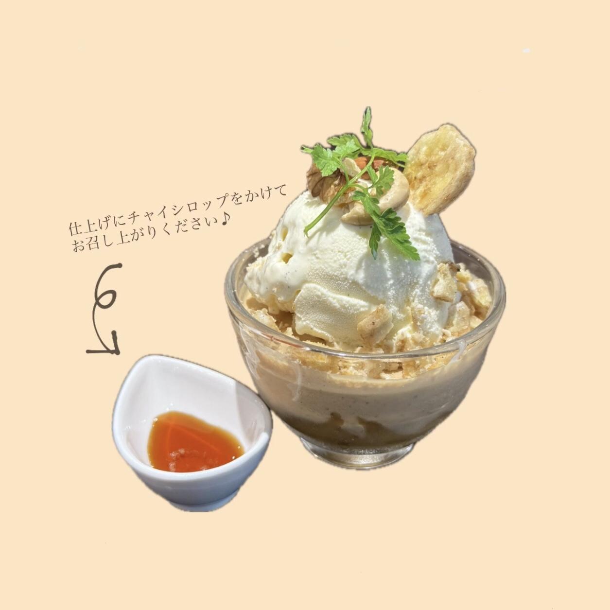 仕上げにチャイシロップをとろりとかける、深くまろやかなデザートです。